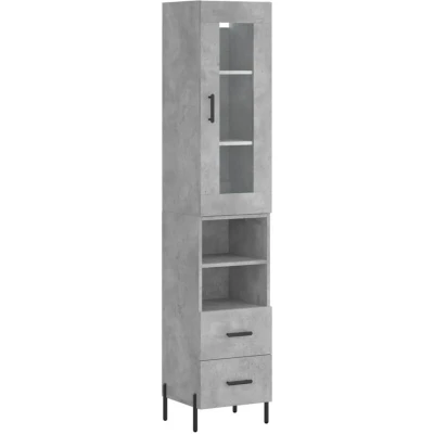 ManoManoGeneral description This stylish highboard in concrete grey adds an elegant charm to your existing interior. It is designed to provide ample storage space for keeping your daily essentials organized and within easy reach, while the practical door helps to keep your space clutter-free. Technical specifications Colour: Concrete grey Material: Engineered wood, metal, glass Overall dimensions: 34.5 x 34 x 180 cm (W x D x H) Sideboard dimensions: 34.5 x 34 x 90 cm (W x D x H) Top for highboard dimensions: 34.5 x 34 x 90 cm (W x D x H) Assembly required: Yes SKU: 3199309 Installation To prevent the highboard from being overturned, it must be used with the provided wall attachment device. Screws and plugs for inside the wall are not included; it is advised to use screws and plugs suitable for your specific walls. Please read and follow each step of the instructions carefully during assembly. Other information