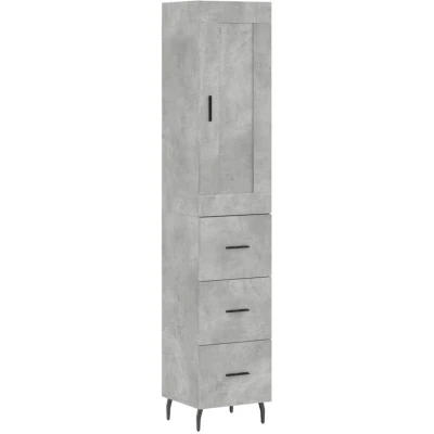 ManoManoGeneral description This stylish highboard in concrete grey adds an elegant charm to your existing interior. It is designed to provide ample storage space while maintaining a modern aesthetic. Technical specifications Colour: Concrete grey Material: Engineered wood, metal Overall dimensions: 34.5 x 34 x 180 cm (W x D x H) Sideboard dimensions: 34.5 x 34 x 90 cm (W x D x H) Top for highboard dimensions: 34.5 x 34 x 90 cm (W x D x H) Assembly required: Yes SKU: 3200213 Installation To prevent it from being overturned, this product must be used with the provided wall attachment device. Screws and plugs for inside the wall are not included; it is advised to use screws and plugs suitable for your specific walls. Please read and follow each step of the instructions carefully. Usage The highboard is ideal for keeping various daily essentials organized and within easy reach. The practical door helps to keep your space clutter-free by hiding small essentials. The metal feet add stability while