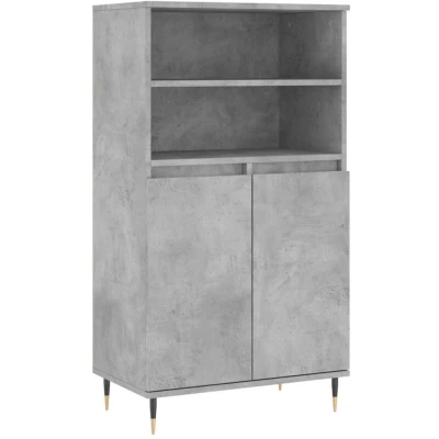 ManoManoGeneral description This stylish highboard in concrete grey adds an industrial charm to your interior while providing ample storage space. With six compartments, it helps keep your daily essentials organized and easily accessible. The practical doors protect your items from dust, and the sturdy top surface is perfect for displaying your favorite decorations. Technical specifications Colour: Concrete grey Material: Engineered wood, metal Dimensions: 60 x 36 x 110 cm (W x D x H) Assembly required: Yes Other information Warning: To prevent it from being overturned, this product must be used with the provided wall attachment device. Images:
