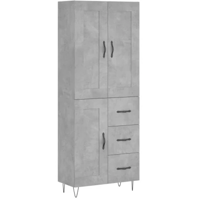 General description This stylish highboard in concrete grey adds an elegant charm to your existing interior. It is designed to provide ample storage space while keeping your essentials organized and within easy reach. The highboard features practical doors to help maintain a clutter-free environment and is supported by sturdy metal feet that ensure stability. Technical specifications Colour: Concrete grey Material: Engineered wood, metal Overall dimensions: 69.5 x 34 x 180 cm (W x D x H) Sideboard dimensions: 69.5 x 34 x 90 cm (W x D x H) Top for highboard dimensions: 69.5 x 34 x 90 cm (W x D x H) Assembly required: Yes SKU: 3200037 Installation To prevent the highboard from tipping over, it must be secured using the provided wall attachment device. Screws and plugs for wall attachment are not included; it is recommended to use screws and plugs suitable for your specific wall type. Please read and follow each step of the assembly instructions carefully. Other information