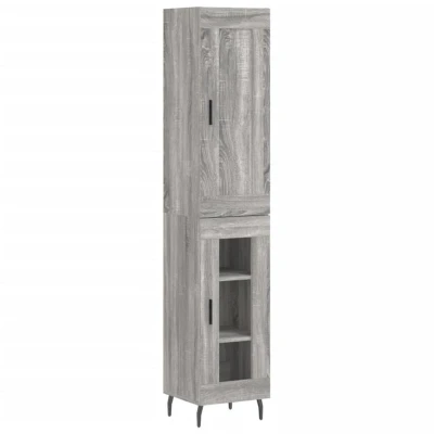 ManoManoGeneral description This stylish highboard adds an elegant charm to your existing interior. Made from high-quality engineered wood, it features a smooth surface that ensures strength, stability, and moisture resistance. The cabinet is designed to be sturdy and durable, providing ample storage space for your daily essentials while keeping your space clutter-free with practical doors. Technical specifications Colour: Grey sonoma Material: Engineered wood, metal, glass Overall dimensions: 34.5 x 34 x 180 cm (W x D x H) Sideboard dimensions: 34.5 x 34 x 90 cm (W x D x H) Top for highboard dimensions: 34.5 x 34 x 90 cm (W x D x H) Assembly required: Yes SKU: 3200407 Installation To prevent the highboard from being overturned, it must be used with the provided wall attachment device. Screws and plugs for inside the wall are not included; it is advised to use screws and plugs suitable for your specific walls. Please read and follow each step of the instructions carefully. Other information