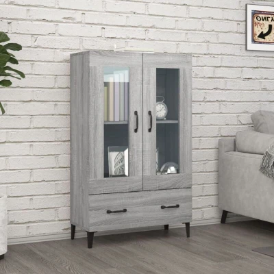 General description This practical and decorative highboard introduces a touch of unique charm to your existing interior. It is designed to provide ample storage while enhancing the aesthetic of your space. Technical specifications Colour: Grey sonoma Material: Engineered wood, tempered glass Dimensions: 70 x 31 x 115 cm (W x D x H) Usage This sideboard has two compartments and a drawer, making it easy to keep your daily supplies well organized. Keep your space clutter-free by hiding small essentials behind the doors of this cabinet. The surface of this side cabinet is easy to clean. Other information Warning: In order to prevent overturning, this product must be used with the wall attachment device provided. Each product comes with an assembly manual in the box for easy assembly.