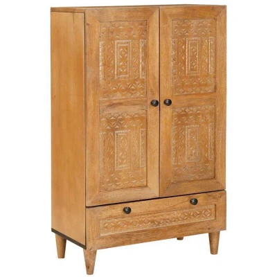 ManoManoGeneral description The Solid Mango Wood Highboard is a stylish storage solution that brings both flair and function to any living or dining area. Its rectangular shape and modern design, with sleek lines and a textured surface, make it a versatile addition that fits in with a range of decor styles. With ample storage, it’s perfect for keeping your dining essentials tidy or showcasing your favorite decorative items, while the textured look gives it a unique vibe. Technical specifications Colour: Light brown Material: Solid mango wood Overall dimensions: 60 x 33 x 100 cm (L x W x H) Weight: 22.6 kg With drawer With 2 shelves With 2 doors Indoor use only Assembly required: Yes EAN: 8721158452030 SKU: 4018110 Brand: vidaXL Usage The highboard is great for living or dining rooms, offering a stylish way to store everything from dining must-haves to books or decorative items. Its design and functionality make it a standout piece in various spaces. Other information