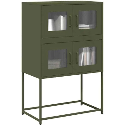 ManoManoGeneral description This highboard in olive green offers both decorative appeal and practical storage, making it a perfect addition to your home. It features a robust and stable construction made from cold-rolled steel, which provides a smoother surface, higher strength, and greater precision. Technical specifications Colour: Olive green Material: Cold-rolled steel Dimensions: 68 x 39 x 107 cm (W x D x H) Maximum weight capacity (total): 70 kg With 4 compartments and 4 doors Assembly required: Yes Installation To prevent tipping, this product must be used with the provided wall attachment device. Usage The cabinet offers ample storage space for dining essentials and other household items to keep them organized and within reach. The door provides enclosed storage space to keep your belongings organized, protected, and out of sight. The door can be installed on the left or right side according to your personal habits and convenience. Practical handles provide a comfortable grip for easy