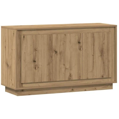General description This classic sideboard, featuring a timeless look, is an excellent addition to your home. Made from high-quality engineered wood, it offers durability, strength, and moisture resistance. The smooth surface makes it easy to clean with a damp cloth. Technical specifications Colour: Artisan oak Material: Engineered wood, steel Dimensions: 102 x 35 x 55 cm (W x D x H) Assembly required: Yes Usage Ample storage space: Equipped with 6 compartments, the sideboard cabinet provides plenty of storage for your daily essentials, keeping them organized and within easy reach. Displaying function: The top of the cupboard is perfect for showcasing decorative items, photo albums, or small plants. Practical doors: Keep your essentials free from dust by storing them behind the doors of this storage cabinet. Other information Warning: To prevent it from tipping over, this product must be used with the wall attachment device (not provided). Images: