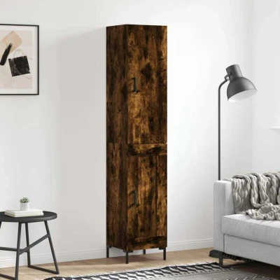 ManoManoGeneral description This stylish highboard adds an elegant charm to your existing interior while providing ample storage space for your daily essentials. The cabinet features practical doors to keep your space clutter-free and is supported by metal feet that ensure stability and a calm style. Technical specifications Colour: Smoked oak Material: Engineered wood, metal Overall dimensions: 34.5 x 34 x 180 cm (W x D x H) Sideboard dimensions: 34.5 x 34 x 90 cm (W x D x H) Top for highboard dimensions: 34.5 x 34 x 90 cm (W x D x H) Assembly required: Yes SKU: 3199110 Installation To prevent the highboard from being overturned, it must be used with the provided wall attachment device. Screws and plugs for inside the wall are not included; it is advised to use screws and plugs suitable for your specific walls. Please read and follow each step of the instructions carefully. Other information