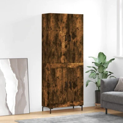 ManoManoGeneral description This stylish highboard in smoked oak adds an elegant charm to your interior while providing ample storage space for your daily essentials. The cabinet features a practical door to keep your space clutter-free and is supported by sturdy metal feet for enhanced stability. Technical specifications Colour: Smoked oak Material: Engineered wood, metal Overall dimensions: 69.5 x 34 x 180 cm (W x D x H) Sideboard dimensions: 69.5 x 34 x 90 cm (W x D x H) Top for highboard dimensions: 69.5 x 34 x 90 cm (W x D x H) Assembly required: Yes SKU: 3195792 Installation To prevent the highboard from tipping over, it must be used with the provided wall attachment device. Screws and plugs for inside the wall are not included; use screws and plugs suitable for your specific walls. Follow each step of the instructions carefully during assembly. Other information