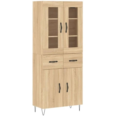 General description This stylish highboard adds an elegant charm to your existing interior. Made from high-quality engineered wood, it features a smooth surface, strength, stability, and moisture resistance. The cabinet provides ample storage space for keeping your daily essentials organized and within easy reach, while the metal feet ensure stability and add a calm style to your decor. Technical specifications Colour: Sonoma oak Material: Engineered wood, glass, metal Overall dimensions: 69.5 x 34 x 180 cm (W x D x H) Sideboard dimensions: 69.5 x 34 x 90 cm (W x D x H) Top for highboard dimensions: 69.5 x 34 x 90 cm (W x D x H) Assembly required: Yes SKU: 3198564 Installation To prevent the highboard from being overturned, it must be used with the provided wall attachment device. Screws and plugs for inside the wall are not included; it is advised to use screws and plugs suitable for your specific walls. Please read and follow each step of the instructions carefully. Other information