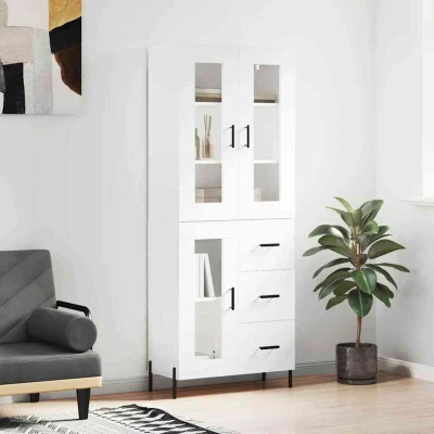 General description This stylish highboard adds an elegant charm to your existing interior. Made from durable engineered wood, it features a smooth surface that offers strength, stability, and resistance to moisture. The highboard provides ample storage space for organizing your daily essentials while keeping your space clutter-free with a practical door. The metal feet not only enhance its aesthetic appeal but also ensure stability. Technical specifications Colour: White Material: Engineered wood, metal, glass Overall dimensions: 69.5 x 34 x 180 cm (W x D x H) Sideboard dimensions: 69.5 x 34 x 90 cm (W x D x H) Top for highboard dimensions: 69.5 x 34 x 90 cm (W x D x H) Assembly required: Yes SKU: 3198601 Installation To prevent the highboard from being overturned, it must be used with the provided wall attachment device. Screws and plugs for inside the wall are not included; it is advised to use screws and plugs suitable for your specific walls. Please read and follow each step of