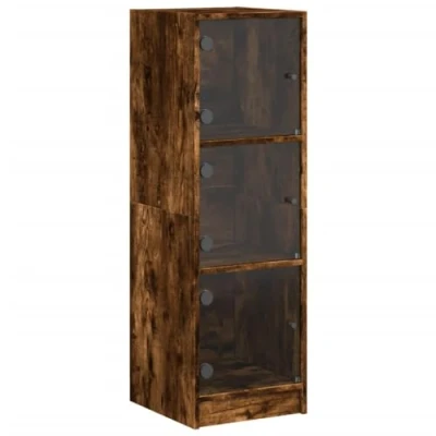 ManoManoGeneral description This stylish highboard adds an elegant charm to your existing interior while providing ample storage space for your daily essentials. The practical glass doors help keep your space clutter-free, allowing you to display items beautifully while keeping smaller essentials hidden. Technical specifications Colour: Smoked oak Material: Engineered wood, glass Dimensions: 35 x 37 x 109 cm (W x D x H) Compartment dimensions: 32 x 37 x 32 cm (W x D x H) Max. load capacity: 60 kg Load capacity of compartment: 30 kg Assembly required: Yes Number of shelves: 3 Other information To prevent it from being overturned, this product must be used with the provided wall attachment device.