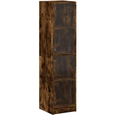 vidaXL Highboard with Glass Doors Smoked Oak, Engineered Wood Cabinet, 4 Compartments, 35x37x142cm, Modern Storage for Dining/Living Room