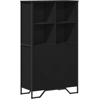 General description This classic highboard is designed to be a decorative and practical addition to your home. It features a sleek black finish and offers ample storage space for organizing your daily essentials. Technical specifications Colour: Black Material: Engineered wood Dimensions: 79.5 x 35.5 x 137.5 cm (W x D x H) Maximum load capacity (total): 80 kg Maximum load capacity (laminate): 20 kg With 4 open compartments and 2 compartments with doors Assembly required: Yes Usage Easy to clean with a damp cloth, requiring less maintenance. Cabinet handles facilitate easy opening and closing of doors while enhancing aesthetic appeal. Other information Warning: To prevent tipping, this product must be used with the provided wall attachment device.