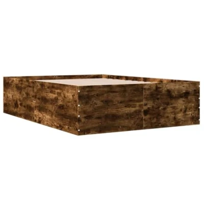 vidaXL Home Bedstead Smoked Oak Engineered Wood Double Bed Frame with Plywood Slats 120x200 cm Modern Bedroom Furniture
