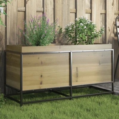 vidaXL Impregnated Pine Wood Garden Planter 100x40x50cm Sturdy Steel Frame Outdoor Patio for Vegetables, Flowers