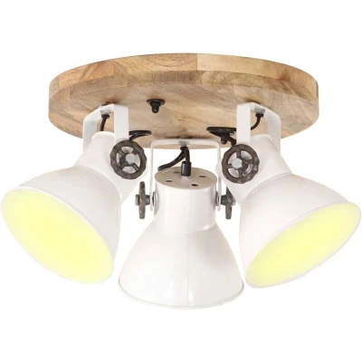 VidaXLThis ceiling lamp, with 17 cm diameter of the shade, is definitely a highlight in the living room, dining room, offices and more. The iron lamp shade, featuring white finish and solid mango wood with weathered barn brown finish, will fit perfectly into a rural or industrial interior. The hanging lamp, with 3 lampshades, has an E27 socket for a bulb of a maximum of 25 watts. You can choose and install E27 bulbs with various light colours, creating an atmosphere of relaxation and restfulness. Please note: This is an industrial style lamp with imperfections at the lampshade, which gives the identity for the lamp and makes it unique with its rough looking. The bulbs are not included.