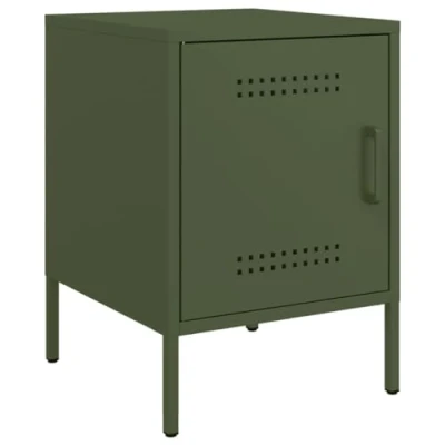 ManoManoGeneral description This bedside cabinet with an industrial style makes a timeless addition to your interior decor. It features a robust and stable steel frame, providing ample storage space for your daily essentials while being moisture-resistant and easy to clean. Technical specifications Colour: Olive green Material: Steel Dimensions: 36 x 39 x 50.5 cm (L x W x H) Assembly required: Yes Usage This cabinet serves as a nightstand next to your bed, a side table next to the couch in the living room, or as an additional cabinet in the study. You can place your favorite photos, decorations, or flowers on top to enrich your space. Other information Warning: To prevent it from tipping over, this product must be used with the provided wall attachment device. SKU: 842918
