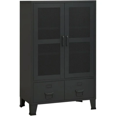 VidaXLThis industrial storage chest will keep your house clean and well-organised! This sideboard is made of metal, making it sturdy and stable. It has 2 shelves and 2 drawers, providing ample storage space to keep your DVDs, multimedia appliances, books and small essential items organised and within reach. With name tag holders on drawers, this cabinet allows you to neatly sort your items. Drawers with 2 sections ballbearing runners ensure smooth opening and closing, even under increased load. Additionally, 2 mesh doors will add an urban industrial feel to your living room or bedroom. It is also easy to clean with a damp cloth.