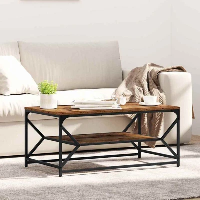 ManoManoGeneral description This coffee table is the perfect mix of modern looks and practical use, designed to jazz up any living room. Its sleek rectangular shape with a smooth, matte finish showcases simplicity and elegance while providing an ideal surface for everyday activities. Technical specifications Materials: Engineered wood and steel Overall dimensions: 90 x 50 x 40 cm (L x W x H) Max weight: 100 kg Assembly required: Yes Colour: Old wood EAN: 8721158248725 SKU: 868235 Brand: vidaXL Included Components Sleek steel legs for extra durability Solid frame for stability on any surface Engineered wood top for displaying magazines, decor, or drinks Recommended Uses This coffee table is ideal for indoor spaces, especially living rooms. Whether you’re having a cozy night in with family or hosting a gathering, it serves as a practical spot for drinks, snacks, books, and more. Care & Maintenance To keep it looking fresh, simply wipe the table with a damp cloth to clean off dust and spills.