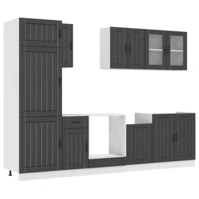 vidaXL Kalmar 8 Piece Kitchen Cabinet Set, Black Wood Material, Unit, Fitted Kitchen, Cupboard Base Cabinet, Wall