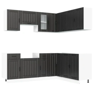 vidaXL Kalmar Black Engineered Wood 11 Piece Kitchen Cabinet Set with Adjustable Feet Includes Base, Wall Cabinets, and Dishwasher Panel