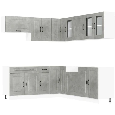 vidaXL Kalmar Concrete Grey Engineered Wood Kitchen Cabinet Set 11 Piece Modular Storage Unit with Adjustable Feet for Modern Kitchens