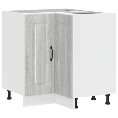 vidaXL Kalmar Engineered Wood Corner Kitchen Cabinet Grey Sonoma Space Saving Design 75.5x75.5x81.5cm, Adjustable Feet