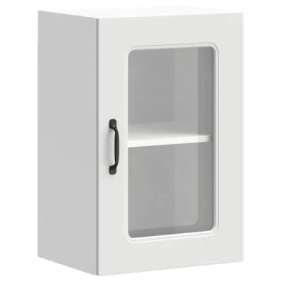 vidaXL Kalmar Kitchen Wall Cabinet Engineered Wood & Glass, White, 40x31x60cm, Storage Solution for Kitchens, Bedrooms, Living Rooms