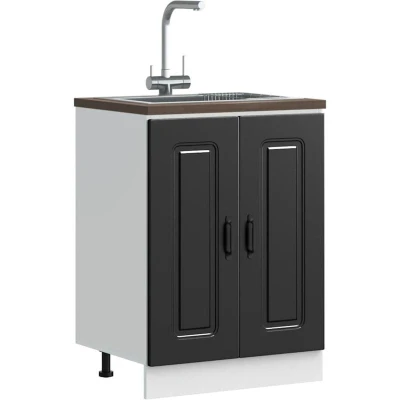 vidaXL Kalmar Sink Base Cabinet Black Engineered Wood, 60x46x81.5 cm, Ample Storage & Adjustable Feet for Modern Kitchens