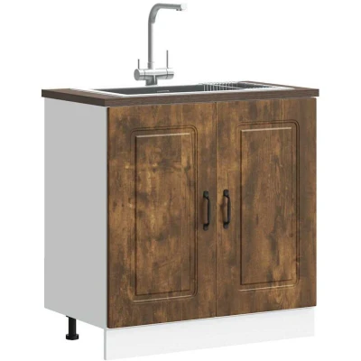 vidaXL Kalmar Sink Cabinet Engineered Wood Smoked Oak, Modern Kitchen Storage, 80x46x81.5 cm