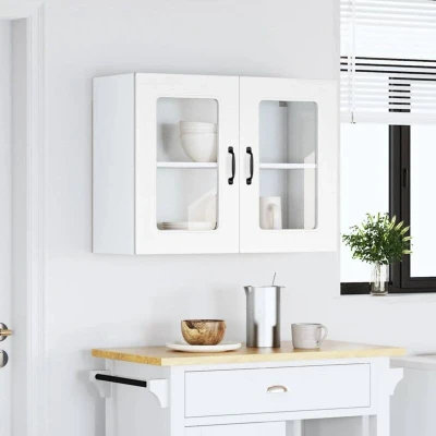 vidaXL Kalmar White Kitchen Wall Cabinet Engineered Wood & Glass with Ample Storage and Concealed Door 80x31x60 cm