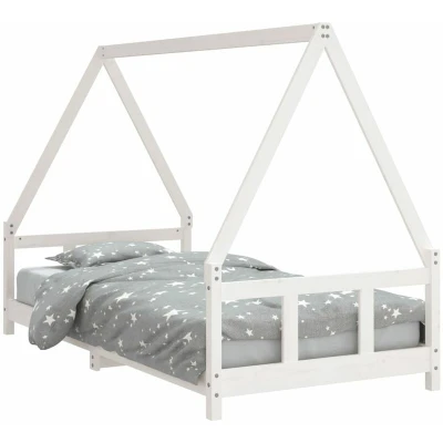 vidaXL Kids Bed Frame in White 90x190 cm Ground Level, Solid Pine Wood Construction, Sturdy Slats and Unique Tipi Design