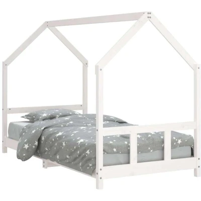 vidaXL Kids Bed Frame in White, Solid Pinewood and Plywood, Fun Playful Design, Suitable for Toddlers, Ideal Bedroom Decor, Assembly Required (90x200 cm)