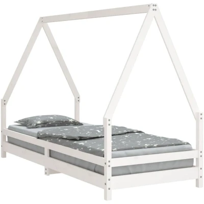 vidaXL Kids Bed Frame in White Solid Pinewood Low Height House Style Design with Sturdy Slatted Base, Fits 80x200 cm Mattress