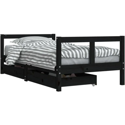 ManoManoGeneral description Dream a dream with this wooden kids bed frame. Featuring an elegant and timeless design, it is the perfect choice for your kids! Technical specifications Material: Solid pine wood Colour: Black Overall dimensions: 165.5 x 85.5 x 55 cm (L x W x H) Suitable mattress size: 80 x 160 cm (W x L) (mattress not included) Drawer dimensions (each): 70 x 51 x 12.5 cm (W x D x H) Suitable for children aged 4 years and above Assembly required: Yes Storage Includes storage drawers for ample space to store small toys, clothing, and bedding, keeping the room tidy and clean. Usage The height of the bed is designed to be low to the ground, making it easy for your child to get in and out of bed. Other information WARNING: Do not place this child's bed near heat sources, windows, and other furniture. WARNING: Do not use this child's bed if any part is broken, torn, or missing.