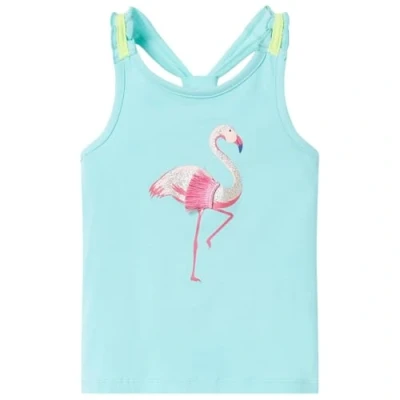 vidaXL Kids' Light Mint Tank Top Camisole Glitter Flamingo Design Sleeveless Vest, Cotton Blend, Comfort Fit for Children Size 128