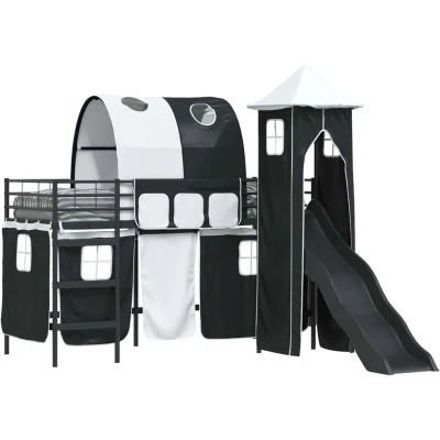 vidaXL Kids'Loft Bed Frame with Curtains, Arch, Slide, Tower Black