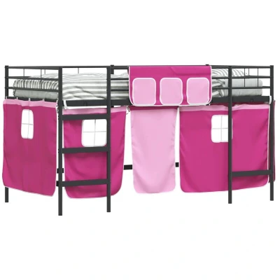 vidaXL Kids'Loft Bed Frame with Curtains Black and Pink 107 x 201 cm