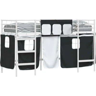 vidaXL Kids'Loft Bed Frame with Curtains White and Black 90 x 190 cm