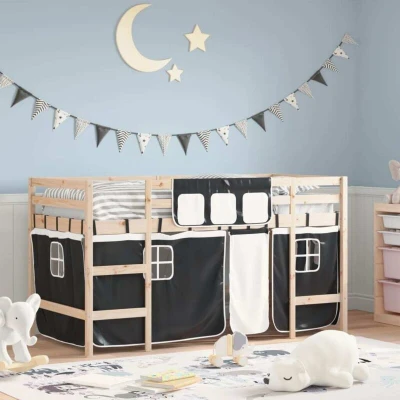 vidaXL Kids' Loft Bed with Curtains without Mattress White&Black 80x200cm