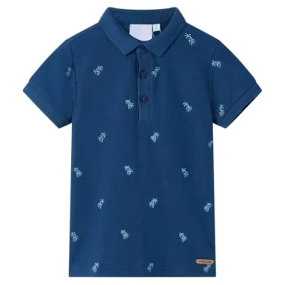 vidaXL Kids' Polo Shirt Cotton Tank & Tee with Small Palms, Dark Blue, Summer Fashion for 7 8 Years, Comfort Easy Care
