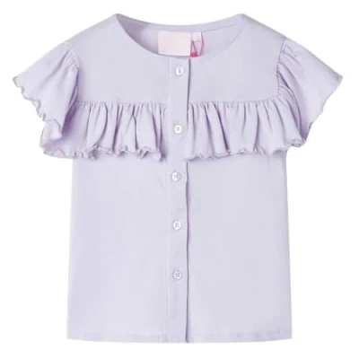 vidaXL Kids' Short Sleeve Cotton T Shirt Toddler Purple/Lila Tee with Ruffles, Machine Washable Top for Ages 1.5 10, Size 104