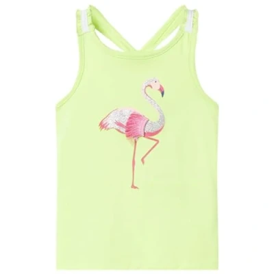 Our children's clothing line is all about affordable, high-quality, and durable everyday wear for kids aged 1.5 to 10. Our range includes jackets, sweaters, shirts, and many more, with a variety in style, size, and colour. Following the high-quality standard in the market, we are using high-grade materials and advanced manufacturing techniques. This kids' tank top has elastic shoulder straps and a straight fit. The glitter flamingo with fancy tape makes the children's tank top look elegant and beautiful. The tank top for kids is made of 57% cotton, 38% polyester and 5% elastane for a soft and comfortable touch. Good to know: This size chart in the picture provides measurements for kids aged 1.5 to 10, covering the height, chest, waist, and hip. You can easily find the right fit for your child.