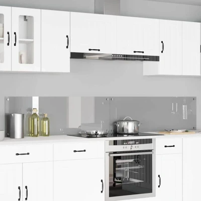 ManoManoGeneral description This sophisticated Tempered Glass Kitchen Backsplash is an optimal addition for enhancing your modern kitchen's aesthetics while providing substantial protection for your kitchen walls. Balancing practicality and elegance, its sleek rectangular design seamlessly integrates into various decor styles, making it a versatile choice for homeowners seeking both form and function. Crafted with premium tempered glass, this backsplash resists heat and simplifies the cooking environment, ensuring your kitchen remains both stylish and functional. Its minimalistic appearance not only elevates the room's vibe but adds depth, light, and an element of luxury to your culinary space. Technical specifications Colour: Light grey Material: Tempered glass Overall dimensions: 120 x 40 cm (L x W) Thickness: 6 mm Durable Heat-resistant Indoor use only Assembly required: Yes Delivery contains: 2 x Kitchen Backsplash EAN: 8721364524453 SKU: 3415503 Brand: vidaXL Installation Comes with 4