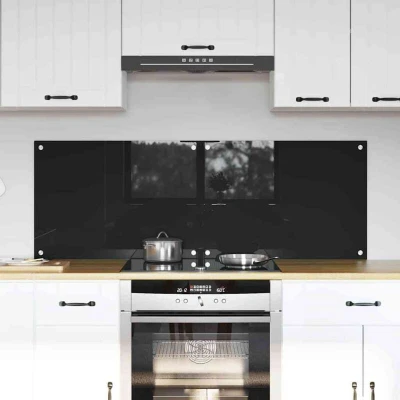 ManoManoGeneral description This sophisticated Tempered Glass Kitchen Backsplash is an optimal addition for enhancing your modern kitchen's aesthetics while providing substantial protection for your kitchen walls. Balancing practicality and elegance, its sleek rectangular design seamlessly integrates into various decor styles, making it a versatile choice for homeowners seeking both form and function. Crafted with premium tempered glass, this backsplash resists heat and simplifies the cooking environment, ensuring your kitchen remains both stylish and functional. Its minimalistic appearance not only elevates the room's vibe but adds depth, light, and an element of luxury to your culinary space. Technical specifications Colour: Black Material: Tempered glass Overall dimensions: 70 x 50 cm (L x W) Weight: 6.85 kg Thickness: 8 mm Indoor use only Durable Heat-resistant 4 pre-drilled holes for easy installation Installation The backsplash comes with 4 pre-drilled holes, allowing for
