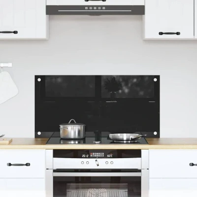 ManoManoGeneral description This sophisticated Tempered Glass Kitchen Backsplash is an optimal addition for enhancing your modern kitchen's aesthetics while providing substantial protection for your kitchen walls. Balancing practicality and elegance, its sleek rectangular design seamlessly integrates into various decor styles, making it a versatile choice for homeowners seeking both form and function. Crafted with premium tempered glass, this backsplash resists heat and simplifies the cooking environment, ensuring your kitchen remains both stylish and functional. Its minimalistic appearance not only elevates the room's vibe but adds depth, light, and an element of luxury to your culinary space. Technical specifications Colour: Black Material: Tempered glass Overall dimensions: 80 x 40 x 0.8 cm (L x W x H) Weight: 6.25 kg Thickness: 6 mm Indoor use only Assembly required: Yes EAN: 8721288899293 SKU: 42018035 Brand: vidaXL Installation The backsplash comes with 4 pre-drilled holes for