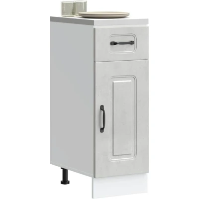 ManoManoGeneral description This kitchen base cabinet optimizes your kitchen space, providing ample storage for your personal belongings. It features a practical door that helps maintain a clean and organized space by concealing kitchen appliances and clutter. Technical specifications Colour: Concrete grey Material: Engineered wood Overall dimensions: 30 x 46 x 81.5 cm (W x D x H) Drawer dimensions: 30 x 38.5 x 16 cm (W x D x H) Cabinet dimensions: 30 x 46 x 54 cm (W x D x H) Maximum weight capacity: 50 kg Weight capacity per layer: 20 kg Range name: Kalmar With adjustable feet The worktop is not included in the delivery Assembly required: Yes Installation To prevent tipping, this product must be used with the provided wall attachment device. Screw(s) and plug(s) for inside the wall are not included; seek and use suitable screw(s) and plug(s) for your walls. If uncertain, seek professional advice. Read and follow each step of the instruction carefully. Usage Easy to maintain: Thanks to its