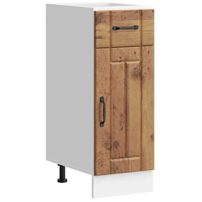 ManoManoGeneral description This kitchen base cabinet optimizes your kitchen space, providing ample storage for your personal belongings. The sink base cabinet offers sufficient space to store bowls, plates, pots, and other kitchen appliances, while practical doors help maintain a clean and organized space by concealing kitchen appliances and clutter. Technical specifications Colour: Old wood Material: Engineered wood Overall dimensions: 30 x 46 x 81.5 cm (W x D x H) Drawer dimensions: 30 x 46 x 16 cm (W x D x H) Cabinet dimensions: 30 x 46 x 54 cm (W x D x H) Maximum weight capacity: 60 kg Weight capacity per layer: 25 kg Range name: Lucca With adjustable feet The worktop is not included in the delivery Assembly required: Yes Installation To prevent tipping, this product must be used with the provided wall attachment device. Screw(s) and plug(s) for inside the wall are not included; seek and use suitable screw(s) and plug(s) for your walls. If uncertain, seek professional advice. Read and