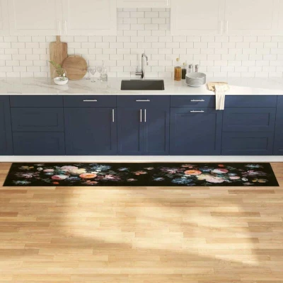 vidaXL Kitchen Mat Floral Black 300 x 60 cm Velvet