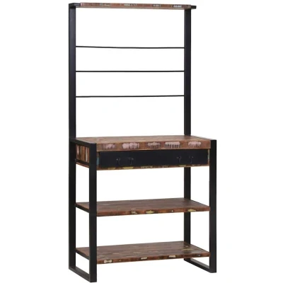 ManoManoGeneral description This Wooden Kitchen Rack combines functionality and style, providing a practical storage solution with a cool industrial look. Designed to fit in any kitchen, it is versatile and can accommodate various kitchen essentials, making it a great addition to both small and large kitchens. Its urban loft-inspired design is modern yet timeless, enhancing any kitchen's ambiance while helping you organize frequently used items. Technical specifications Colour: Multicolour Material: Solid reclaim wood Overall dimensions: 80 x 40 x 160 cm (L x W x H) Weight: 27.45 kg Durable Indoor / outdoor: Indoor only Number of items: 1 Assembly required: Yes EAN: 8721158313690 SKU: 4015990 Brand: vidaXL Usage Loads of Storage: With plenty of shelves, this rack provides ample space to keep everything from utensils to pots and pans organized. Built Tough: Designed for regular use, the kitchen rack maintains its shape and sturdiness, supporting all your kitchen gadgets. Urban Chic: Its