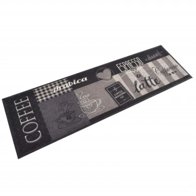 General description This kitchen rug is soft and plush, providing a comfortable surface to walk on. Its stylish Coffee Black design makes it an attractive addition to any room. Technical specifications Size: 150 x 45 cm (L x W) Total height: 5 mm Pile height: 4 mm Total weight: 1180 g/m² Tuft density: 205000 g/m² Top layer material: Velvet (100% polyamide) Backing material: Latex Usage Machine washable for easy cleaning. Great for both indoor and outdoor use. Flexible design allows for convenient rolling for storage and transport. Other information